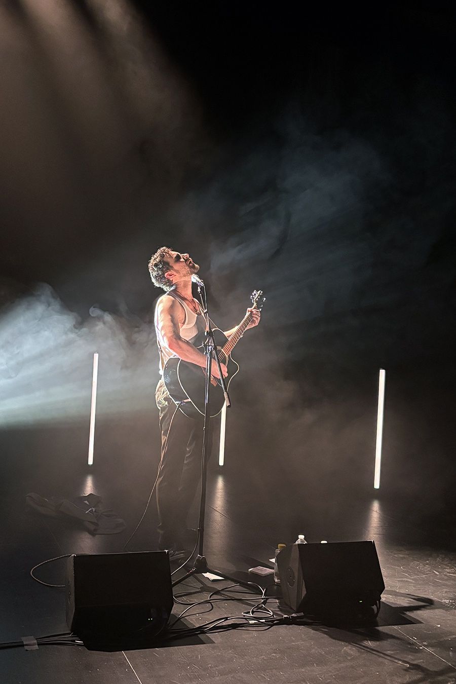 Luke De-Sciscio se présente seul sur la scène à l’éclairage tamisé et intimiste, un peu intimidé, et s’empare de sa guitare acoustique. Il souhaite au public et se souhaite de vivre une belle soirée, déclarant que la musique de Jeff Buckley est entrée très tôt dans sa vie et lui a donné l’envie de composer et jouer. La voix de Luke est époustouflante, à mi-chemin entre Buckley et Asaf Avidan, fusant avec élégance dans les notes élevées comme pour y décrocher les étoiles. Une discrète complicité s’installe d’emblée entre les auditeurs et l’artiste.