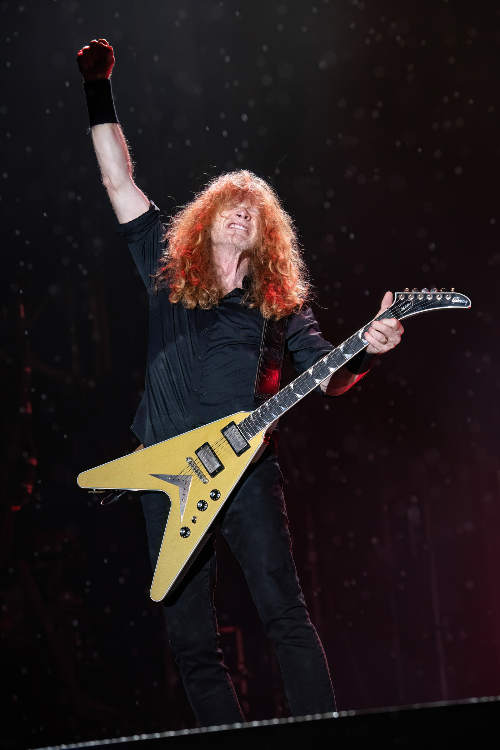 Le quatuor déboule à 350 à l’heure avec «Tipping point», perpétuant la plus pure tradition thrash. Le son est clair comme une lune blanche, la production léchée, la voix rugissante, les arrangements ciselés, le solo jaillissant. Gardien du temps, Dirk Verbeuren semble avoir cinq bras et trois jambes tant il se démène comme un hyperactif sans Ritalin. Etonnamment, la voix de Dave se bonifie avec l’âge. Peut-être aussi parce qu’il évolue un ton plus bas. Son jeu de guitare est époustouflant de technique. Père du thrash, pionnier, précurseur, ambassadeur, apôtre, doctor honoris causa: il mérite tous ces qualificatifs. Le tempo ralentit avec «Hey God ?!», qui aurait fait bonne figure sur « Cryptic Writings », album que les fans aiment détester. Le filleul d’Alice Cooper y partage quelques doutes existentiels, questionnant un Dieu qui semble silencieux et lointain. Ce qui n’est pas faux.