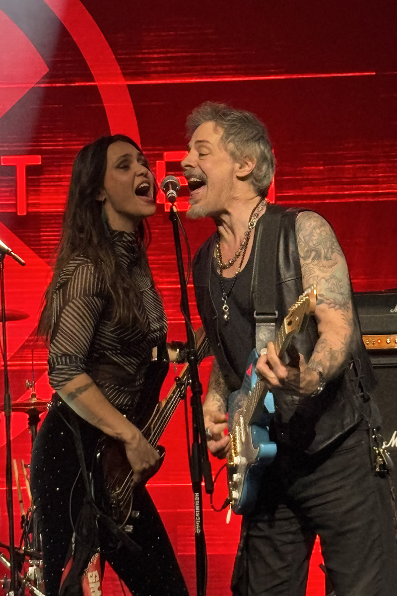 Le groupe débute le set avec l’intro mélodique de ‘Life Unchained’ où les guitares s’enlacent avec fluidité avant que la chanson ne s’emballe sur un rythme entraînant. Adrian et Richie alternent chant et soli de guitares tout au long des titres qui s’égrènent, Smith a un timbre de voix plus brut de coffre que le velouté de Kotzen qui pousse dans les notes plus perchées. A leurs côtés, Bruno Valverde (Angra, Kiko Loureiro Trio) à la batterie et la souriante et charmante Julia Lage (Vixen, One More Satellite) – Valentine de Richie – à la basse et aux chœurs. Tous deux assurent une rythmique efficace et bondissante pour une assise idéale aux maestri. Le dernier album est tout naturellement mis en avant avec sept titres interprétés.